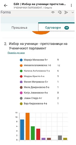 За поуспешна работа на Ученичкиот парламент, избрани се претседател и заменик претседател кои ќе го претставуваат парламентот на состаноците на Наставничкиот совет. За претседател е избрана ученичката Михаела Блажевска од 7-б одделение, а за нејзин заменик, ученичката-Марија Миланова од 9-г одделение.
