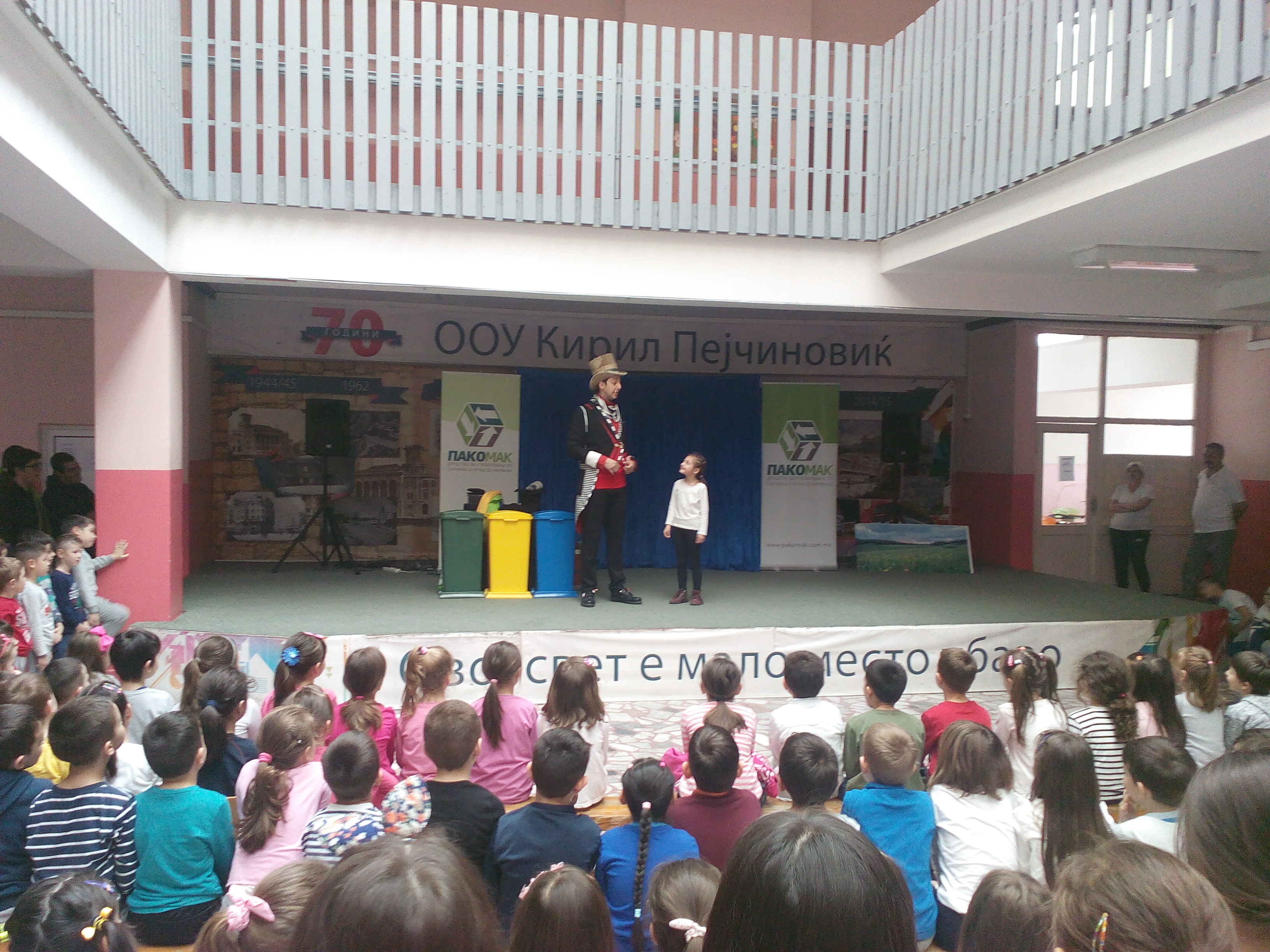 На ден 04.04.2018 година во основното училиште Кирил Пејчиновиќ, со своите интересни и поучни магионичарски трикови, гостуваше илузионистот Кристиан Шопов. Целта на посетата беше да се развие еко свеста кај најмалите ученици, со што и тие да се обучат како би можеле да придонесат за да живееме во поздрава животна средина. Еко едукацијата, спроведена низ триковите на Кристиан, беше примена со преголемо задоволство и интерес од страна на учениците. Целата претстава се одвиваше низ постојана интеракција меѓу магионичарот и учениците, со што и ефектот, повратната информација од истата беше прекрасна. Учениците преку магионичарските игри ги запаметија точните бои на кантите за отпад, за селектирање на отпадот, и со тоа научија како успешно да учествуваат во рециклирање на истиот. Целата изведба беше спроведена со сликовит материјал, каде беше премногу живописно претставена нашата Планета, со и без отпад.